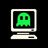 Retro computer icon with a green ghost on screen.